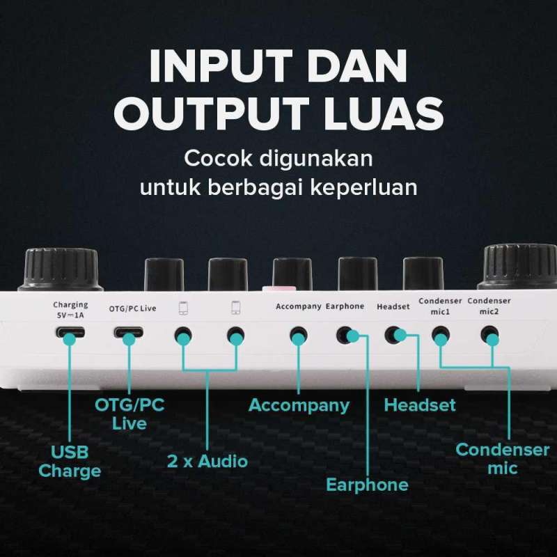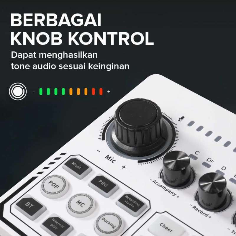 Fitur: - Peningkatan Kualitas Audio: Teknologi noise reduction mengurangi gangguan suara agar output audio lebih bersih dan jernih. - Efek Suara Beragam: Pilih dari 15 efek suara untuk membuat konten Anda lebih menarik, cukup tekan tombolnya untuk mengakses. - Fitur Perubahan Suara: Ingin mengubah suara menjadi laki-laki, perempuan, atau bayi? Fitur ini sangat cocok untuk podcasting. - Kontrol Kreatifitas: Knob dan tuas kontrol memungkinkan pengaturan khusus untuk treble, bas, reverb, dan lainnya. - Konektivitas Bluetooth: Hubungkan ke smartphone tanpa kabel, memudahkan penggunaan di mana saja. - Sistem Input dan Output Beragam: Kompatibel dengan mikrofon, earphone, dan perangkat lain untuk fleksibilitas penggunaan.