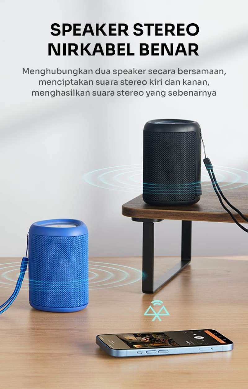 - Stereo Sound: Mendukung interkoneksi dua speaker untuk pengalaman stereo.