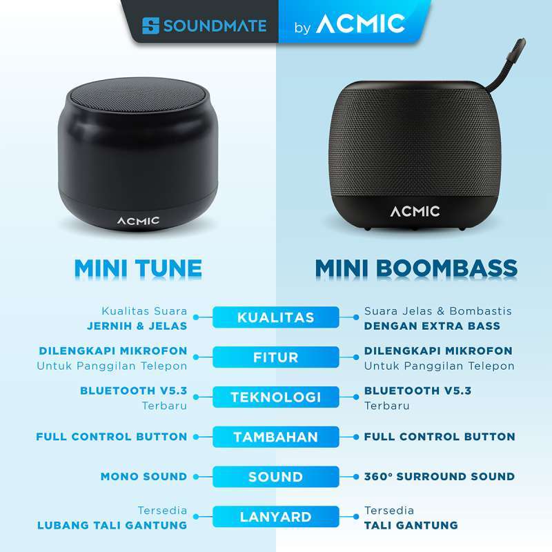 Tingkatkan pengalaman audio Anda dengan ACMIC MINI BOOMBASS, teman perjalanan sempurna yang menawarkan kualitas suara superior dan kemudahan penggunaan.
