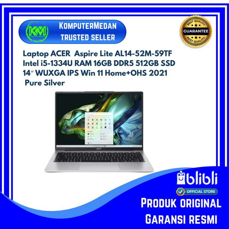 Temukan keandalan Laptop ACER Aspire Lite AL14-52M-59TF yang dirancang untuk memenuhi kebutuhan sehari-hari Anda. Dengan prosesor Intel® Core™ i5-1334U dan RAM 16GB DDR5, laptop ini menawarkan kinerja yang cepat dan responsif untuk multitasking yang lancar.
