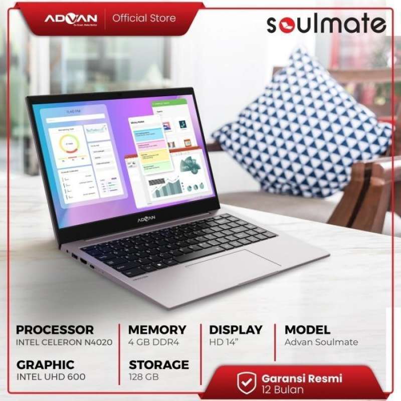 Temukan efisiensi dan kenyamanan dengan Laptop Advan Soulmate N4020. Dirancang untuk mendukung produktivitas Anda sehari-hari, laptop ini memiliki prosesor Intel Gemini Lake N4020 dan grafis terintegrasi Intel, memastikan kinerja yang handal untuk bekerja, belajar, atau sekadar menjelajah internet.