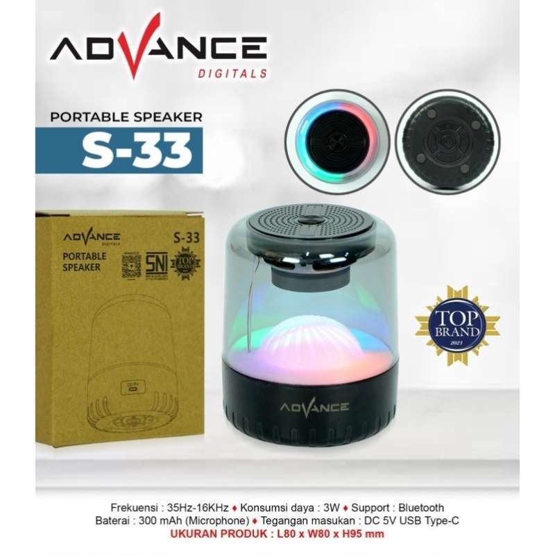 Temukan keunikan S-33 Advance Speaker Mini Portable Bluetooth dengan lampu RGB menarik, solusi ideal untuk kebutuhan audio Anda. Desainnya yang ringkas dan portabel memastikan Anda dapat menikmati musik di mana saja, kapan saja.