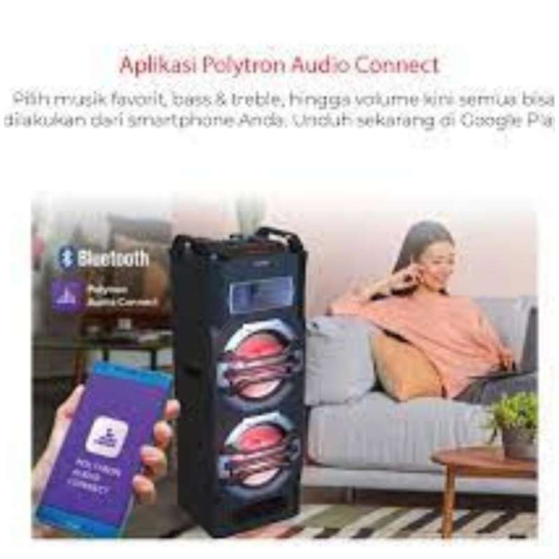 - Sambungan Bluetooth didukung aplikasi Polytron Audio Connect untuk kemudahan kontrol.