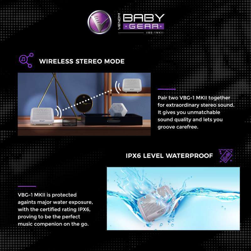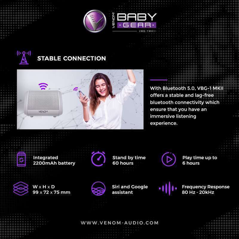 Temukan kenyamanan dan fungsi dari Venom Baby Gear VBG-1 MKII Speaker Bluetooth Portable. Speaker mini ini dirancang untuk memberikan pengalaman audio yang mengagumkan tanpa mengorbankan portabilitas.