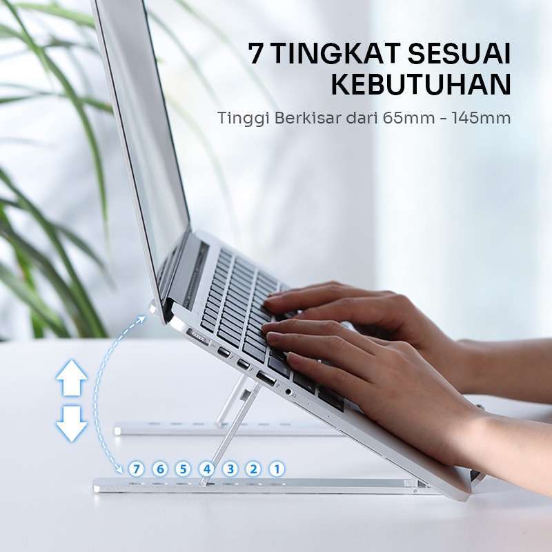 - Stabilitas Tinggi: Terbuat dari material aluminium alloy kualitas penerbangan, dudukan ini mampu menahan laptop pada kemiringan tinggi tanpa goyang.