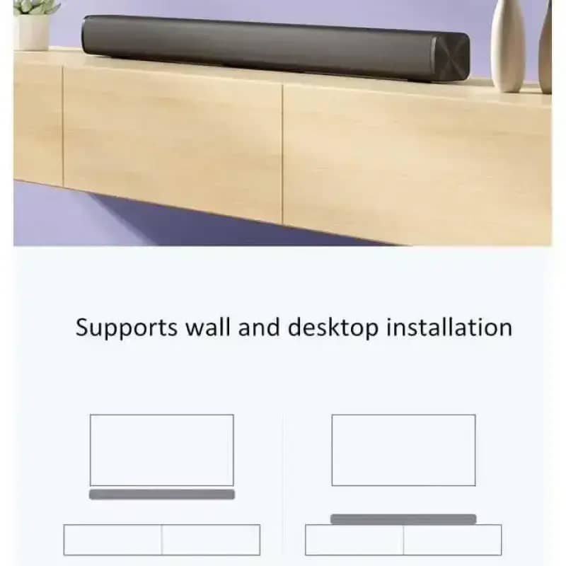 Pasang dengan mudah di bawah TV atau dinding untuk efek suara surround yang memukau. Hubungkan melalui Bluetooth 5.0 atau kabel AUX dan nikmati kualitas suara terbaik dari film, musik, dan game favorit Anda.
