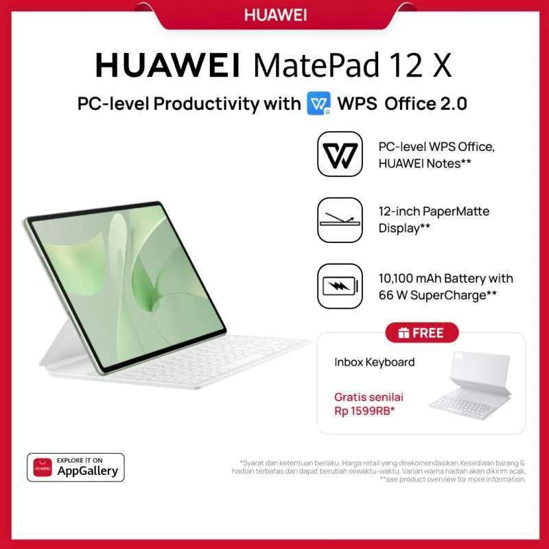 Tingkatkan produktivitas dan kreativitas Anda dengan HUAWEI MatePad 12 X Tablet. Temukan pengalaman teknologi yang menyeluruh dan dinamis, menghadirkan solusi pintar dalam genggaman Anda.