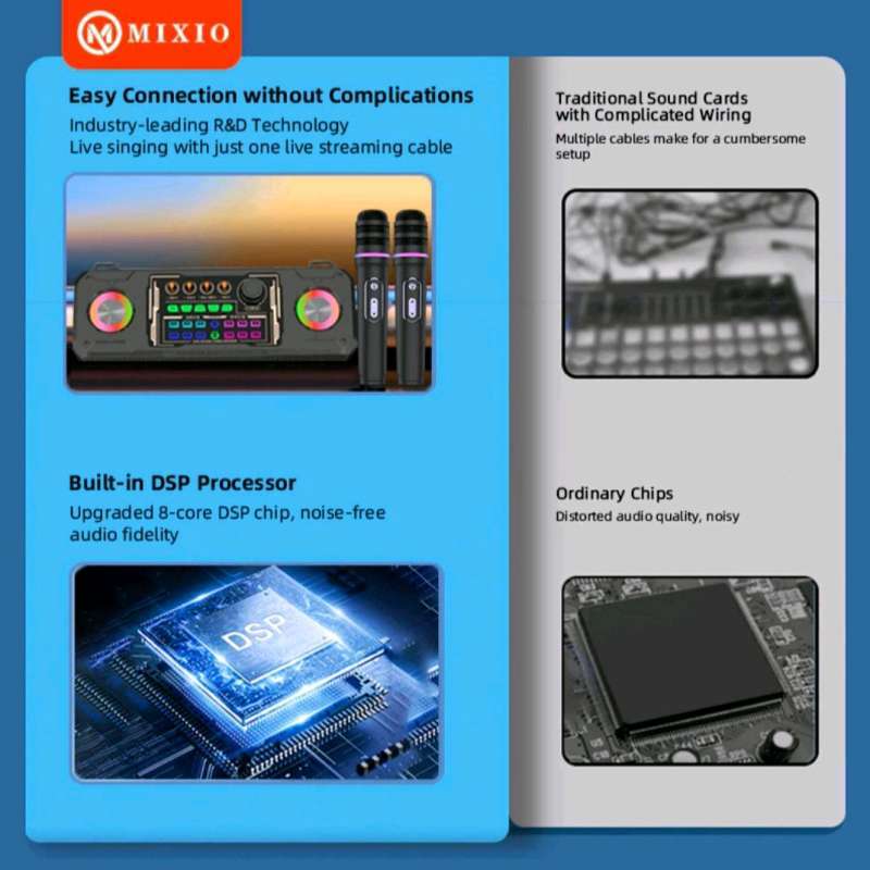 Temukan kemudahan dalam MIXIO YS-301 Soundcard Bluetooth Speaker 2 Microphone Wireless Karaoke All-in-One, yang dirancang untuk memenuhi kebutuhan hiburan Anda. Produk ini menggabungkan kartu suara dan speaker dalam satu set praktis, memberikan pengalaman karaoke yang memuaskan tanpa repot.