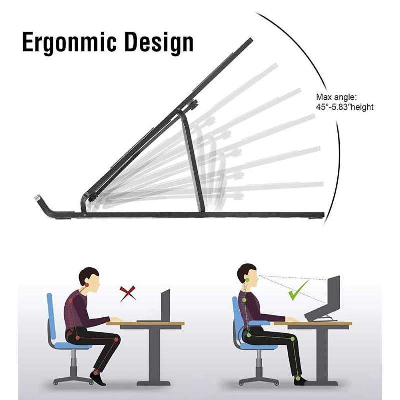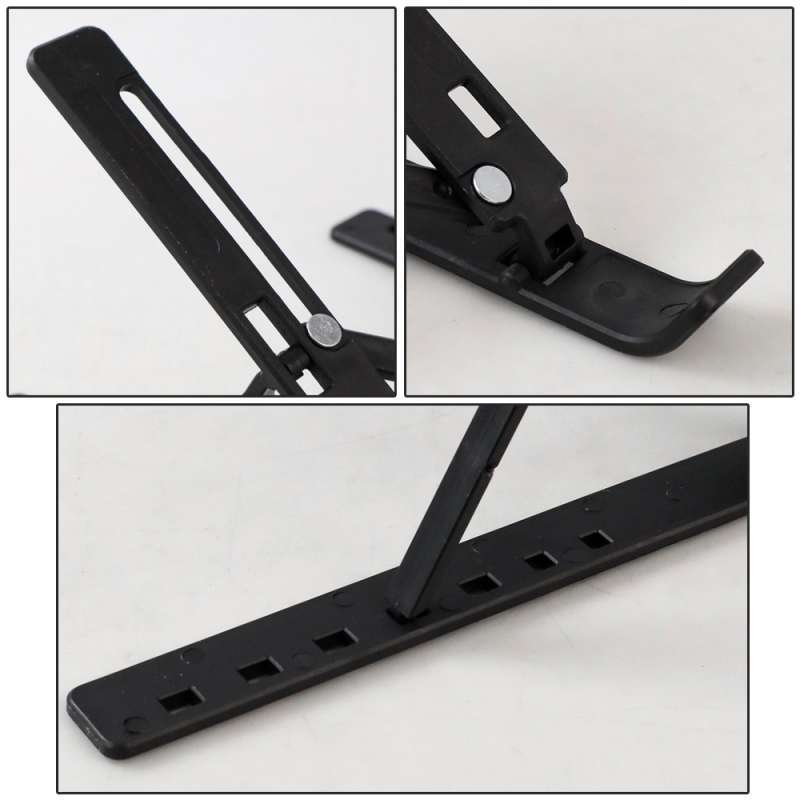Material: Terbuat dari plastik tebal berkualitas tinggi, stand ini mampu menahan beban laptop berat, termasuk laptop gaming. Mudah Dibawa: Bobot yang ringan memudahkan stand ini untuk dibawa bepergian. Anda dapat menyimpannya di dalam tas tanpa menambah beban berlebih. Pengaturan Ketinggian: Nikmati kenyamanan maksimal dengan 7 pengaturan sudut kemiringan. Sesuaikan posisi laptop Anda sesuai kebutuhan. Fitur Lipat: Dapat dilipat menjadi ukuran yang lebih kecil, stand ini mudah disimpan atau dibawa, menghemat ruang dalam tas Anda. Ukuran: Ketika dilipat, dimensinya hanya 4.5 x 23.7 x 1.3 cm dan ketika terbuka menjadi 16.5 x 23.7 x 13.5 cm, membuatnya praktis untuk penggunaan sehari-hari.