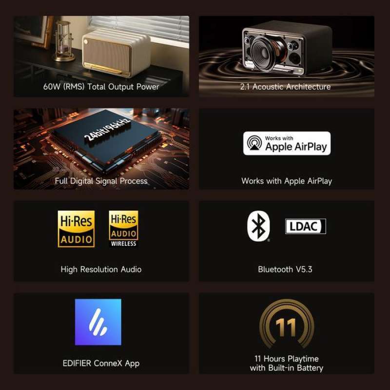 Temukan keunggulan Speaker Edifier D32 Bluetooth V5.3 yang dirancang untuk menghadirkan pengalaman audio berkualitas tinggi di rumah Anda. Dengan desain retro yang menawan, speaker ini cocok dengan berbagai gaya dekorasi ruangan Anda.