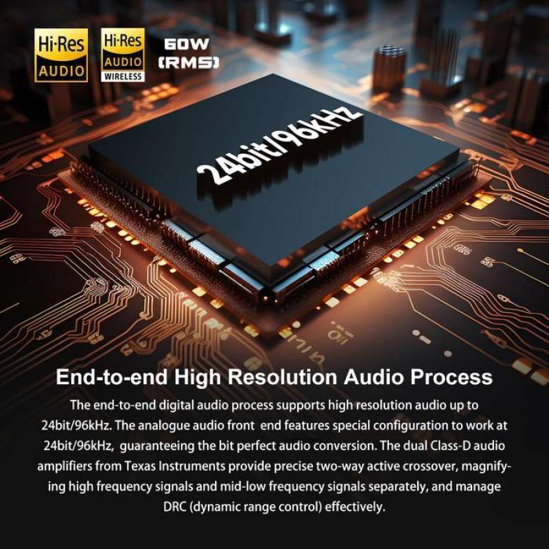 - Sertifikasi Hi-Res Audio: Proses audio digital dari ujung ke ujung mendukung resolusi tinggi hingga 24bit/96kHz.