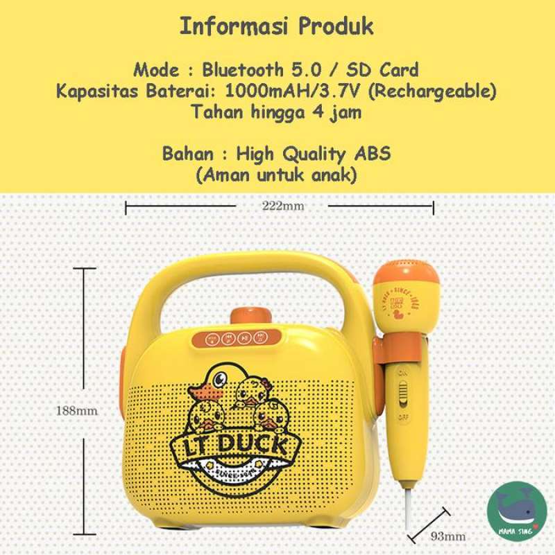 Temukan pesona dari MAMA SING Mainan Microphone + Speaker Bluetooth Anak Portable Bebek, yang dirancang dengan cermat untuk anak-anak yang suka menyanyi dan mendengarkan musik.