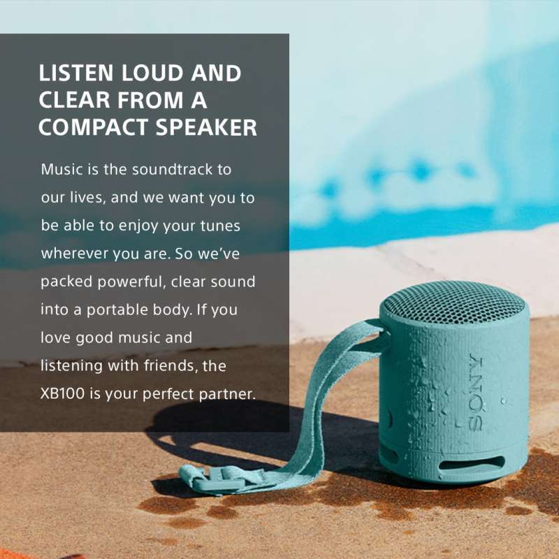 Jadikan Speaker Sony SRS-XB100 teman setia Anda dalam menikmati musik kapan saja, di mana saja, dengan kualitas dan kenyamanan yang tak tertandingi.