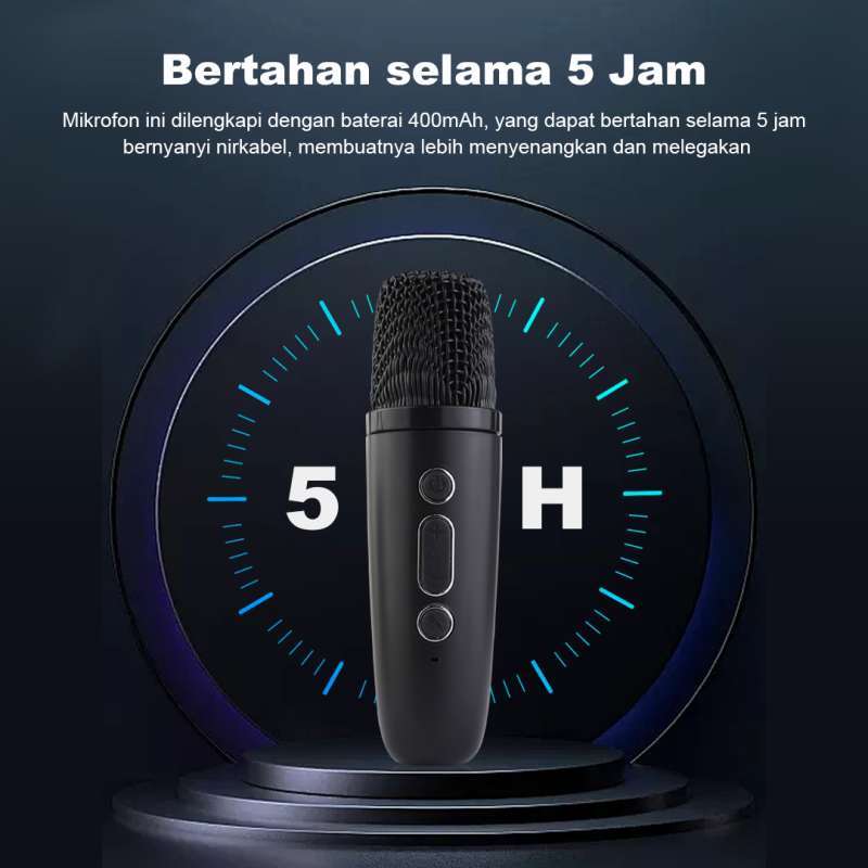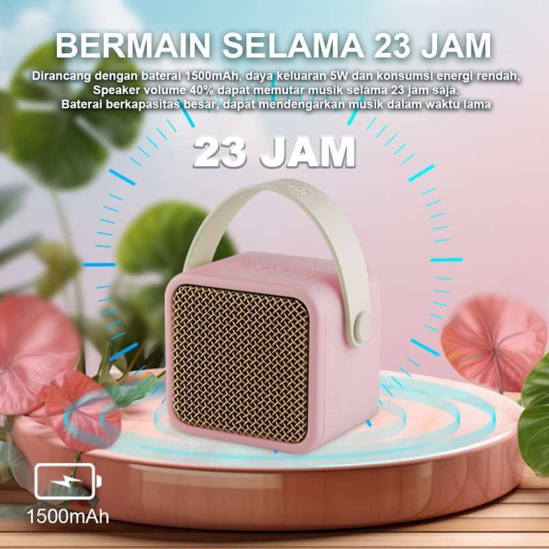 Waktu Pemutaran: Dengan kapasitas baterai speaker 1500mAh, nikmati musik atau karaoke hingga 8 jam tanpa gangguan.