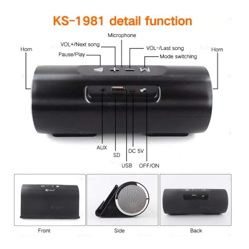 Konektivitas Nirkabel: Nikmati kemudahan koneksi wireless dan dukungan Bluetooth, FM Radio, USB, TF-Card, serta AUX untuk berbagai pilihan sumber audio. Daya Suara: Speaker aktif ini dilengkapi output daya 8W x 2, memastikan suara jernih dan bass yang mendalam di setiap frekuensi dari 20Hz hingga 20KHz. Desain Praktis: Dengan dimensi kompak 15x22x15 cm dan berat hanya 700 gr, KS-1981 mudah dibawa kemana saja. Selain itu, terdapat fitur phone holder untuk kenyamanan tambahan. Daya Tahan Baterai: Baterai berkapasitas 1200 mAh tahan digunakan selama 3-5 jam, ideal untuk menemani aktivitas sehari-hari. Teknologi TWS: Sambungkan speaker sesama jenis untuk suara stereo yang lebih luas dan immersive. Kemudahan Penggunaan: Dilengkapi dengan kabel USB Micro dan kabel Aux, memudahkan pengisian daya dan koneksi ke perangkat lain.