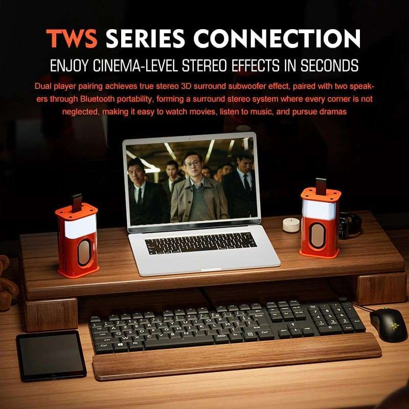 Teknologi TWS: Dengan mengaktifkan mode interconnected, Anda dapat menikmati efek suara stereo seolah berada di teater, sempurna untuk semua sudut ruangan. Suara 360 Derajat: Speaker dengan daya tinggi 5W memberikan performa suara yang mengesankan dan pengalaman audio-visual yang penuh. Endurance & Mode Cahaya: Pengisian selama 3 jam untuk pemutaran musik hingga 18 jam dan mode standby 120 jam. Nikmati pertunjukan cahaya yang bergerak selaras dengan irama musik untuk pengalaman yang lebih menyenangkan. Aplikasi Luas: Speaker ini adalah pilihan kado ideal untuk berbagai acara spesial seperti ulang tahun atau pesta. Cocok untuk berkemah, pesta, dan perayaan.