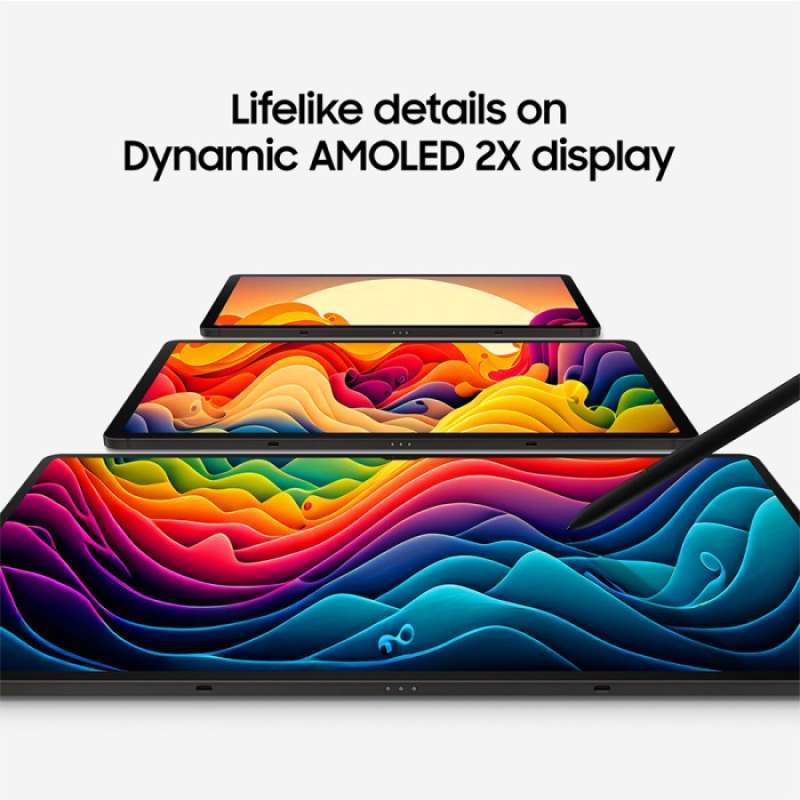 Layar: Hadir dengan layar Dynamic AMOLED 2X berukuran 254.8 x 165.8 x 5.9 mm dan resolusi WQXGA, memberikan tampilan gambar yang tajam dan jernih untuk segala jenis konten. Kamera: Dilengkapi dengan kamera belakang 13 MP dan kamera depan ultra-wide 12 MP, jadikan momen penting Anda lebih hidup dengan kemampuan merekam video 4K. Audio: Nikmati pengalaman audio yang imersif dengan Quad Speakers oleh AKG, sempurna untuk hiburan dan panggilan video. Baterai: Dengan kapasitas baterai 8,400 mAh dan dukungan pengisian cepat 45W, Anda dapat tetap produktif lebih lama tanpa khawatir kehabisan daya. Konektivitas: Didesain untuk koneksi wifi, tablet ini juga memiliki fitur Bluetooth 5.3, USB Type-C, dan kemampuan pemindai sidik jari di layar.