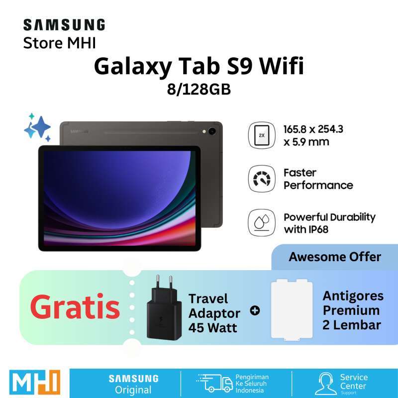 Dengan perangkat tambahan seperti S Pen IP68, Galaxy Tab S9 adalah pilihan ideal untuk mereka yang mencari kinerja dan fungsionalitas dalam satu paket. Tingkatkan produktivitas dan gaya hidup digital Anda hari ini.