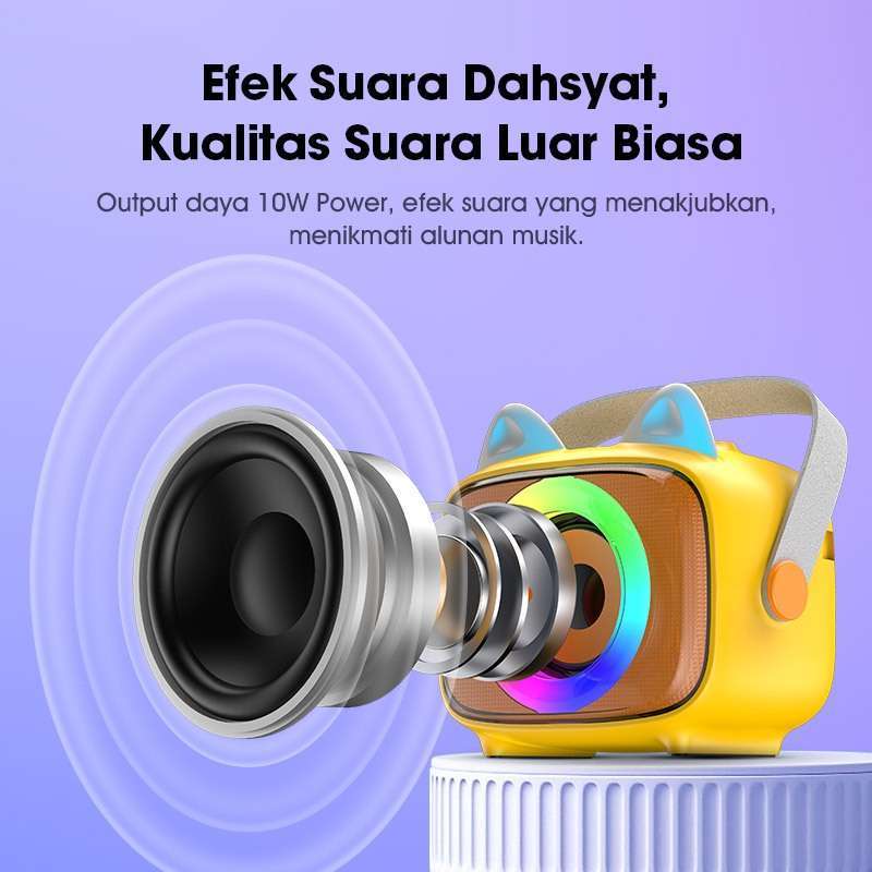 - Multi-sumber musik: Selain Bluetooth, speaker ini mendukung kartu TF, U disk, dan kabel AUX.
