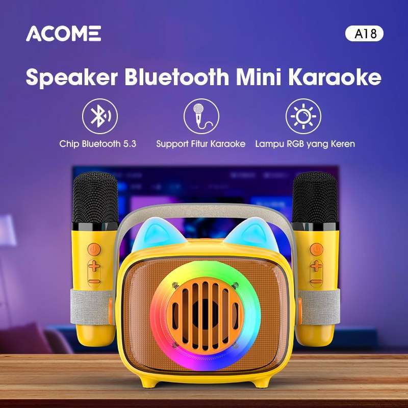 Temukan keunggulan dari ACOME X Cece Fancy A18 Speaker Karaoke yang cocok untuk segala suasana. Speaker mini ini dilengkapi dengan dua mikrofon nirkabel, memungkinkan Anda berkaraoke kapan saja, baik saat berkemah atau berkumpul dengan teman.