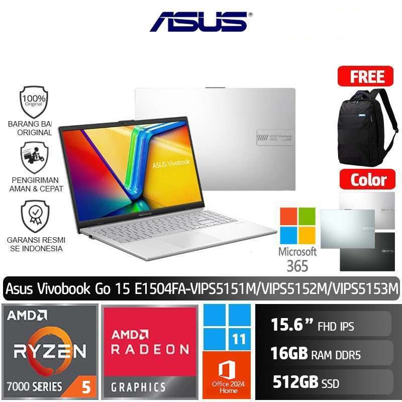 Dengan ASUS Vivobook Go 15, Anda mendapatkan kombinasi kekuatan dan gaya dengan opsi warna Mixed Black, Green Grey, dan Cool Silver. Laptop ini hadir dengan Windows 11 Home dan Microsoft Office Home 2024, serta gratis sebuah tas punggung, siap mendukung mobilitas dan produktivitas Anda.