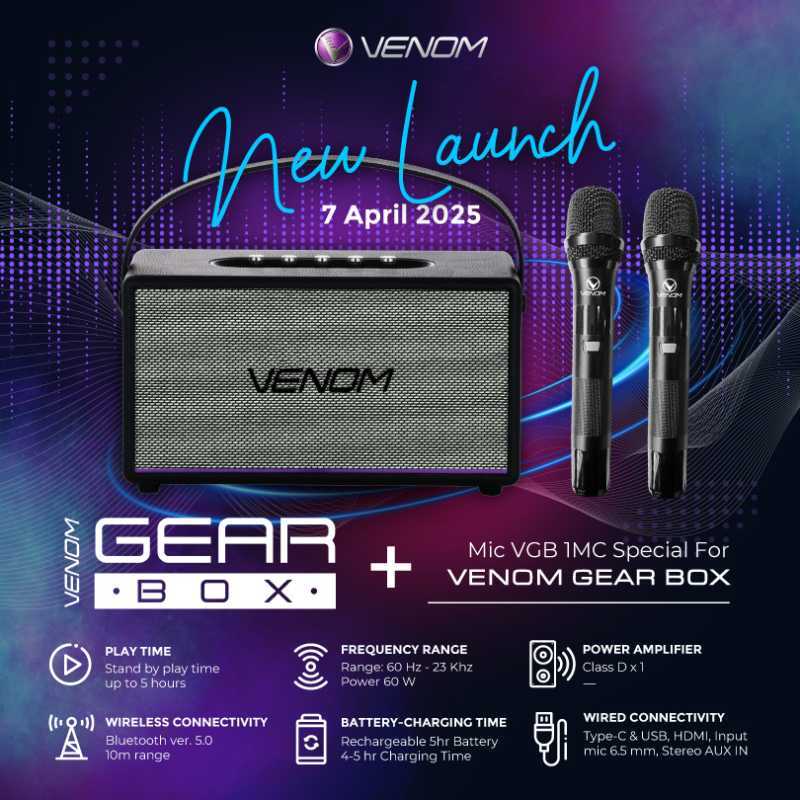 Dengan Venom Gear Box, nikmati kualitas suara yang tidak hanya didengar, tetapi dirasakan. Cocok untuk segala suasana, speaker ini adalah teman terbaik Anda untuk menikmati musik dan momen berharga.