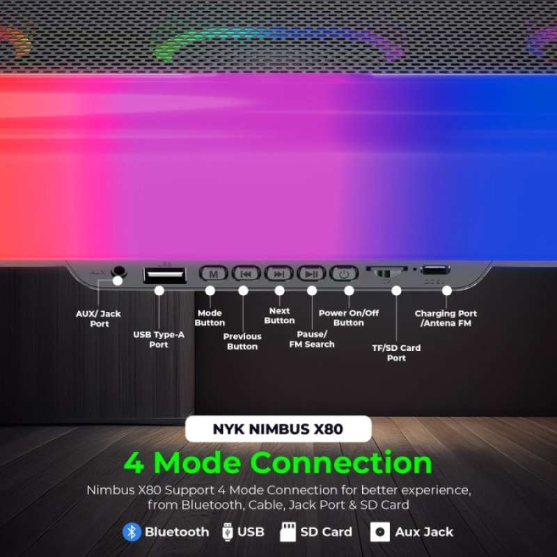 Temukan keunggulan dari NYK Nemesis NIMBUS X80 Speaker Soundbar Bluetooth 5.2, yang dirancang untuk memberikan pengalaman audio yang luar biasa baik untuk mendengarkan musik maupun menonton film.