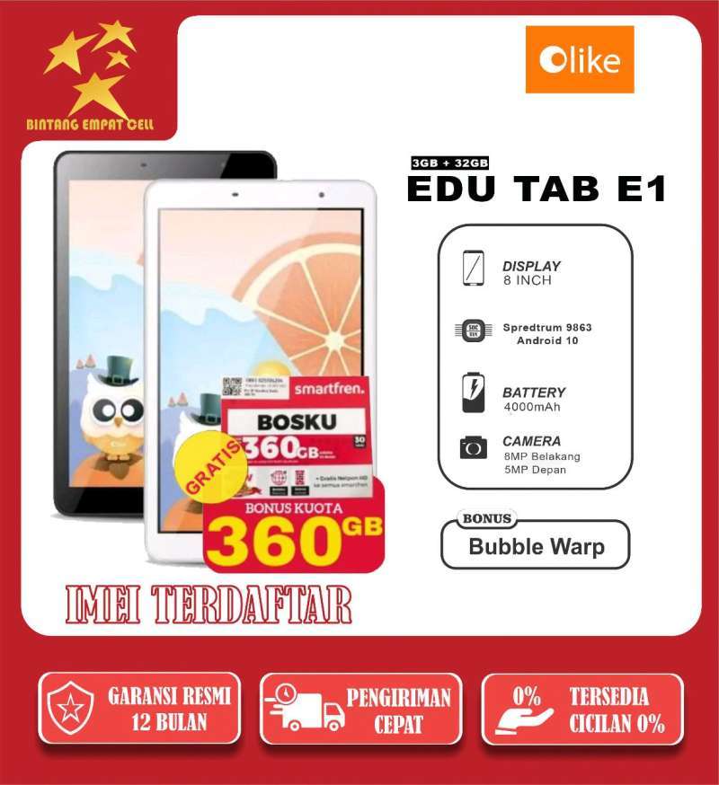 Manfaatkan tablet OLIKE EDUTAB E1 ini untuk memberikan pengalaman belajar yang interaktif dan seru bagi anak Anda. Dengan fitur-fitur unggul dan konektivitas yang andal, belajar dari rumah kini jadi lebih mudah dan menyenangkan!