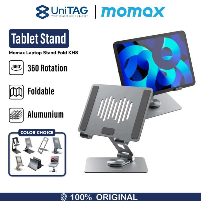 Temukan fungsionalitas dari Stand Holder Momax Dudukan Laptop Tablet yang dirancang untuk kebutuhan sehari-hari. Stand ini terbuat dari alumunium yang kuat, ideal untuk laptop hingga 17 inci dan tablet 10.5 - 12.9 inci, memastikan perangkat Anda aman dan stabil.