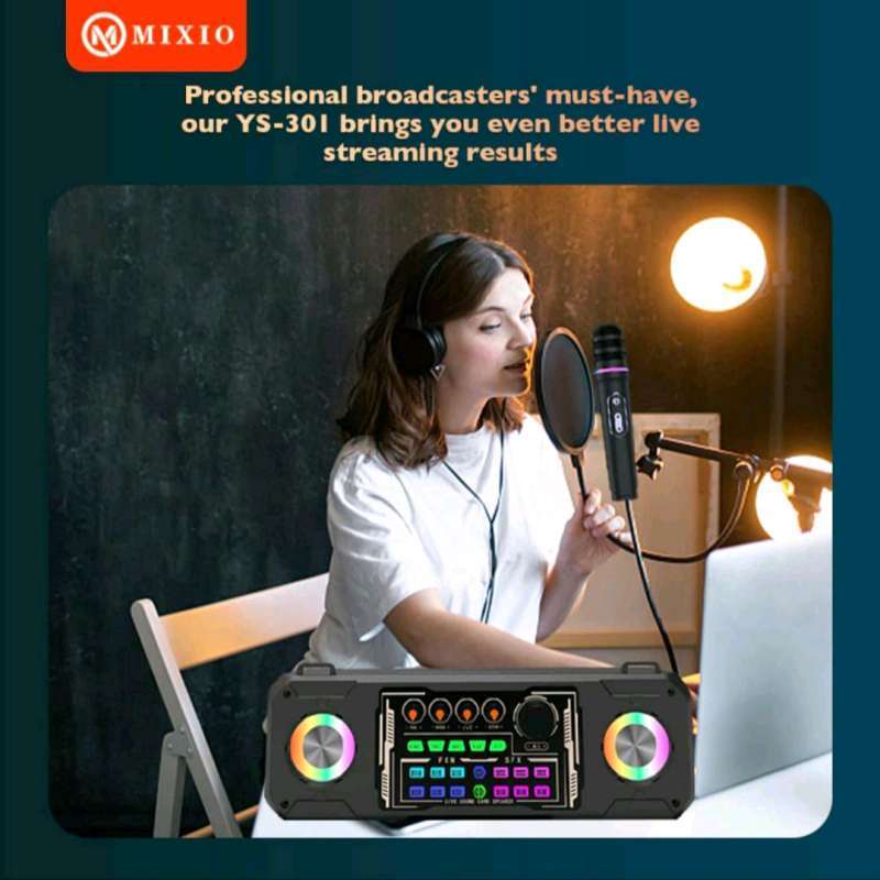 Temukan kehebatan MIXIO YS-301 Soundcard Bluetooth Speaker 2 Microphone Wireless Karaoke All-in-One, dirancang dengan cermat untuk menghadirkan pengalaman karaoke yang menyeluruh dan mudah digunakan.