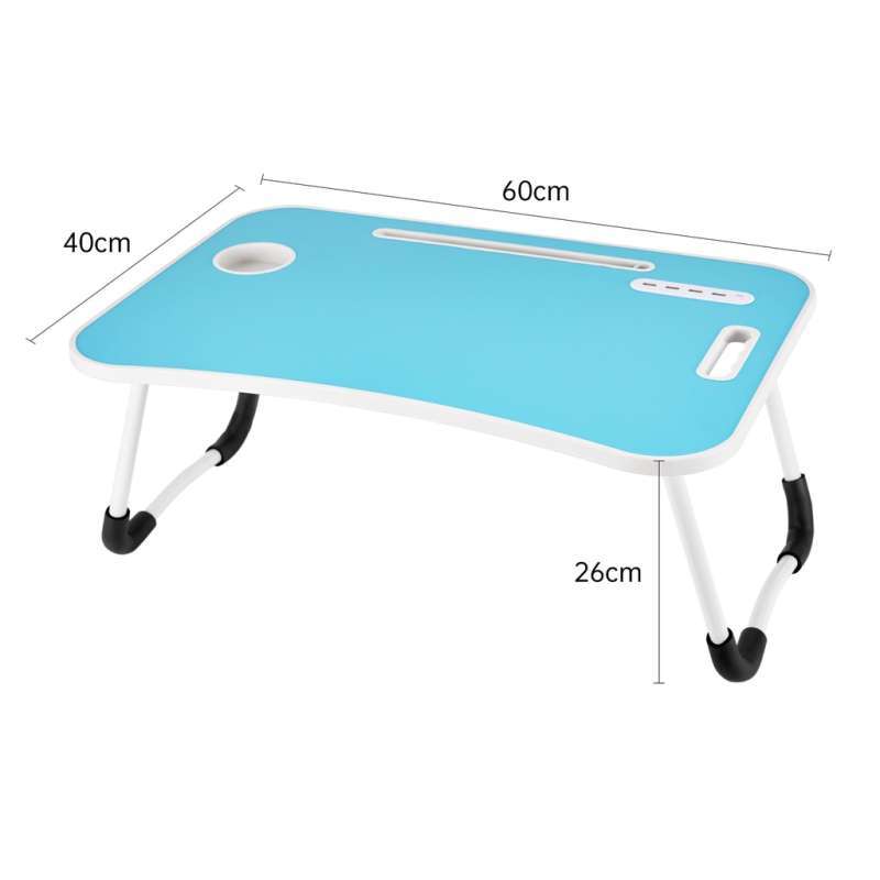Ukuran: Meja berukuran 60 x 40 x 28 CM, memberikan ruang yang cukup untuk laptop dan kebutuhan belajar lainnya. Kemudahan: Meja ini ringan, mudah dilipat, dan praktis untuk dibawa ke mana saja. Desain portable memungkinkan Anda memindahkannya dengan mudah sesuai kebutuhan. Kenyamanan: Dilengkapi dengan cup holder, phone holder, dan handle, meja ini menyediakan tempat khusus untuk meletakkan minuman, tablet, buku, atau ponsel. Koneksi: Dilengkapi dengan port USB serta bonus kipas USB, lampu LED USB, dan kabel USB untuk kenyamanan maksimal. Keamanan: Memiliki bantalan anti-slip pada empat sudutnya sehingga meja tidak licin dan aman digunakan. Kualitas: Permukaan MDF panel yang tidak mudah tergores, anti air, dan mudah dibersihkan, memastikan meja tetap dalam kondisi terbaik.