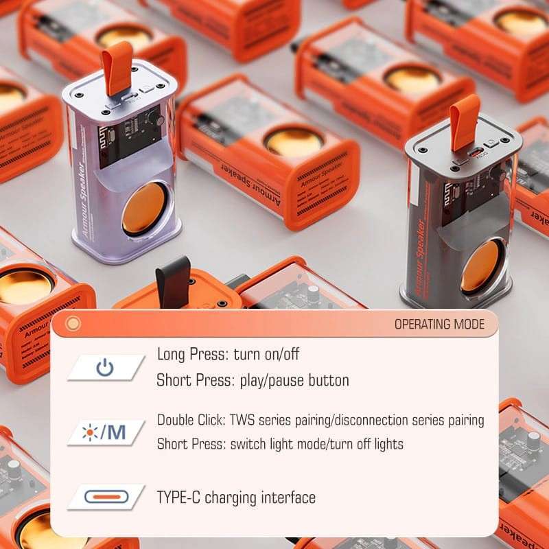Temukan inovasi dari Speaker Bluetooth Mecha Mini 5w Transparan Audio LED Rhythm TWS 5.0, dirancang untuk memberikan pengalaman audio terbaik dengan kemudahan nirkabel.
