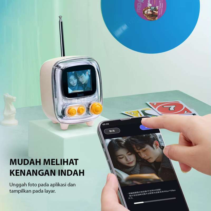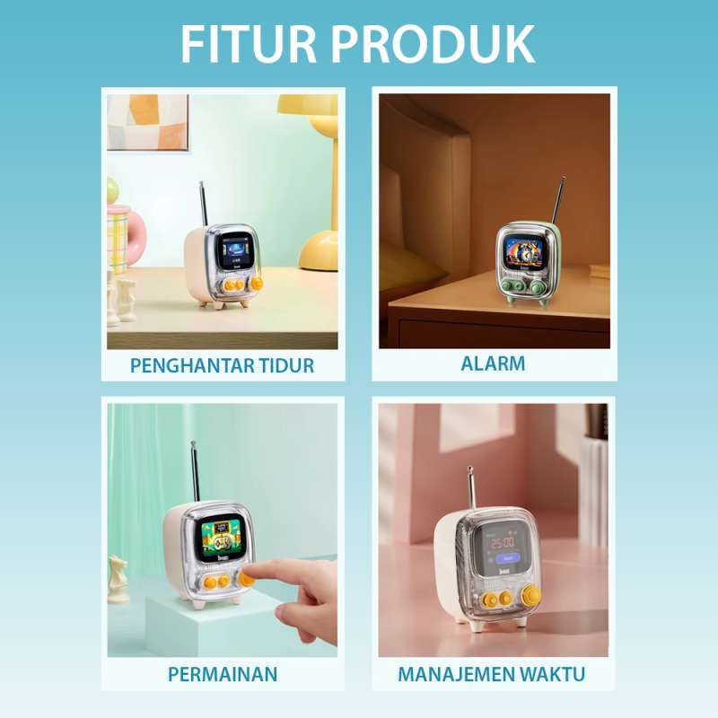 Desain Retro: Bentuk unik menyerupai TV retro dilengkapi tombol joystick klasik, menambah kesan vintage yang fungsional.