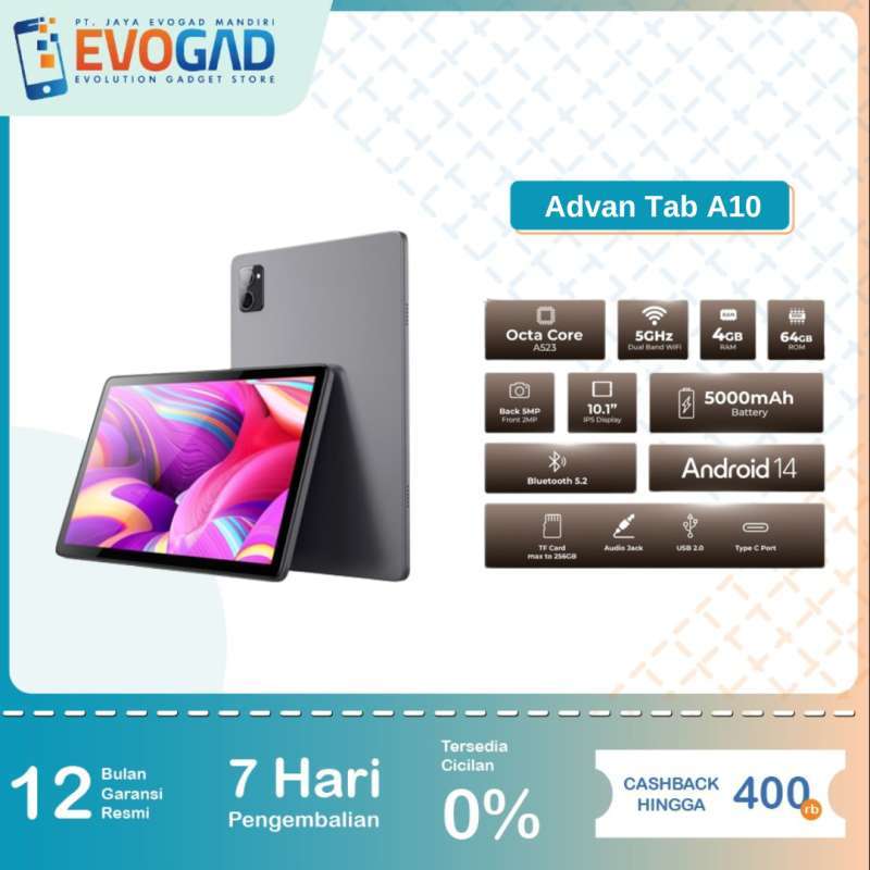 Jelajahi keunggulan tablet ADVAN TAB A10 WIFI, dirancang untuk memenuhi berbagai kebutuhan pengguna modern. Tablet ini hadir dengan layar HD IPS 10.1 inci yang memberikan tampilan jernih dan tajam, ideal untuk menonton video, membaca, atau bermain game.