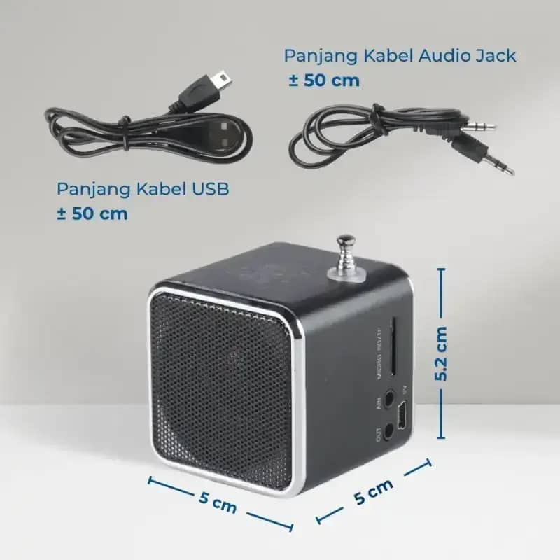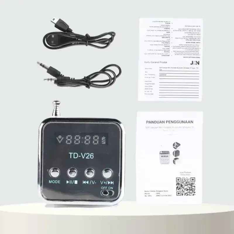 1 x NBY Speaker Bluetooth Portable Mini MP3 Player FM Radio 3W - TD-V26 1 x Kabel Mini USB 1 x Kabel Audio Jack 3.5 mm Male to Male