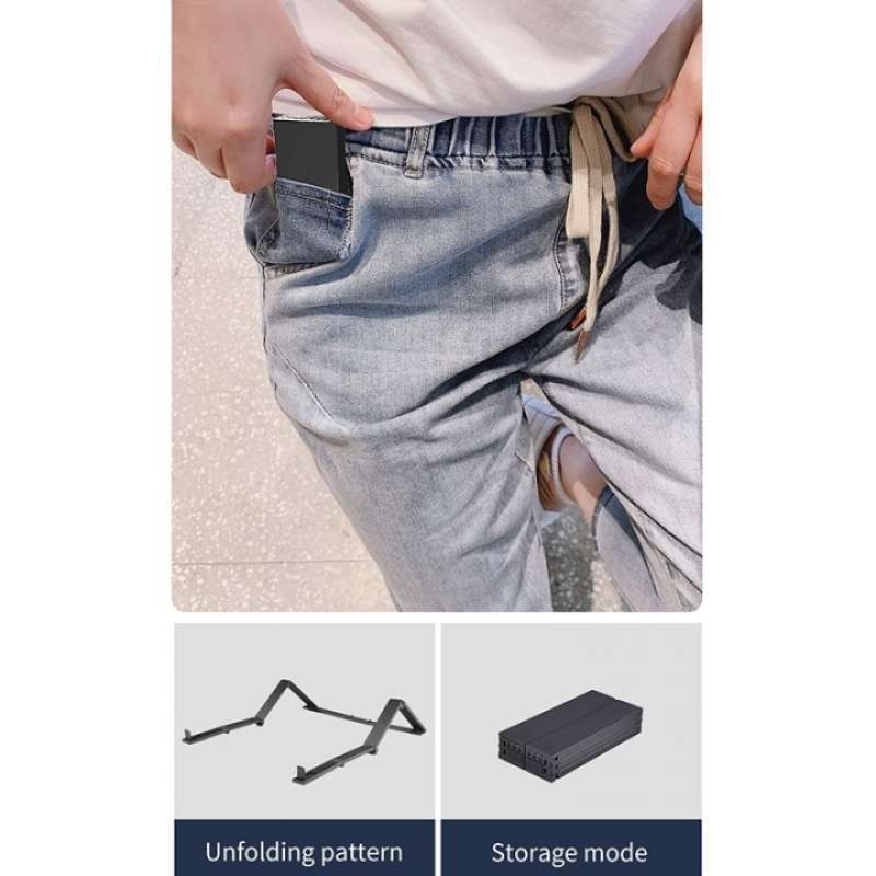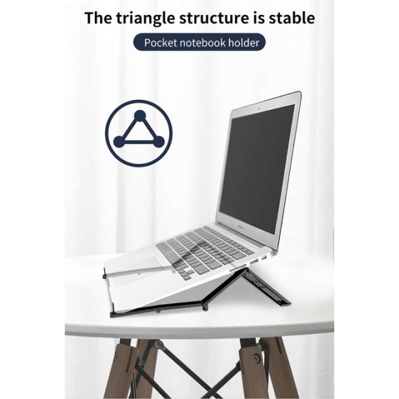 Material: Terbuat dari bahan PA66 dan GF30% yang memiliki kekuatan tinggi namun tetap ringan, sehingga mampu menahan beban laptop tanpa masalah. Desain: Struktur segitiga memastikan kestabilan perangkat, sementara desain berongga membantu mengurangi panas berlebih yang dihasilkan dari bagian bawah laptop. Kenyamanan: Sudut pandang yang nyaman membantu mengurangi tekanan pada leher, bahu, dan punggung, menjaga postur tubuh tetap baik dan mencegah kelelahan. Kejelasan Visual: Dilengkapi dengan desain buckle anti-slip, Anda tidak perlu khawatir laptop terjatuh atau rusak. Portabilitas: Dengan berat hanya sekitar 50 gram dan dimensi 8 x 3.8 x 1.6 cm saat terlipat, dudukan ini sangat mudah dibawa kemana saja, baik dalam saku maupun tas.